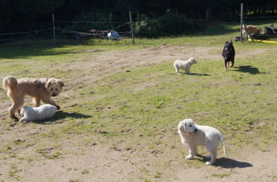 Will man ein Rudel Welpen beschäftigen, ist unbedingt die Benutzung eines Kartons in Betracht zu ziehen: Welpen lieben Kartons!