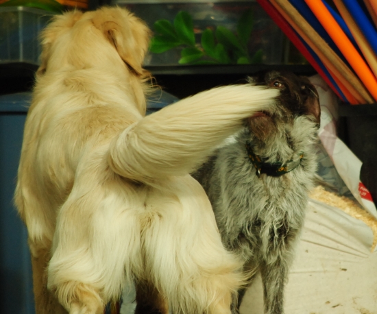 Die Chefin meint, ich grinse auf dem Foto wie ein Honigkuchenpferd, phhhh, soll sie doch mal selber in den Spiegel gucken, wenn sie weiß, dass wir gleich trainieren werden. Sie grinst doch genauso ...