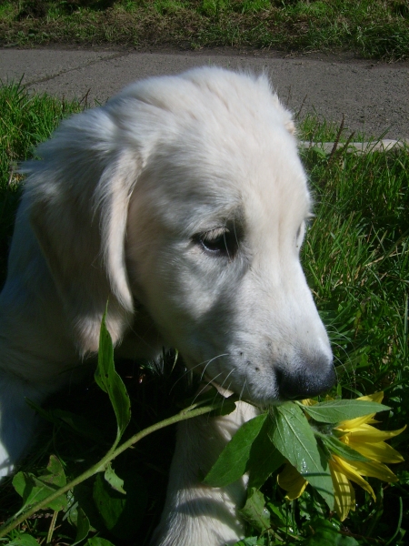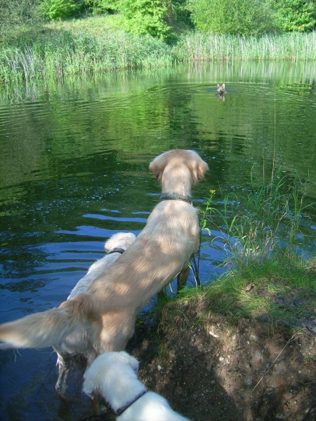 Die Chefin, ihre Tochter und ich sind nach Rastorfer Passau zu Martina Credo gefahren, der Schwester von meiner Züchterin Marion. Sie hat im Moment einen Wurf Goldies, die ihr Euch unter http://martinacredo.net anschauen könnt - sehr niedliche kleine rote Zwerge von 7 Wochen!