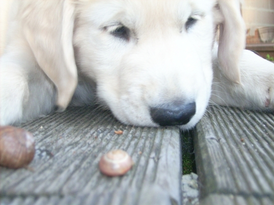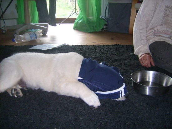 Ach, habe ich gut geschlafen. Die Chefin sah etwas gerädert aus, sie sagt, sie ist die ganze Nacht aufgewacht und hat geschaut, ob ich mal raus muss – musste ich aber nicht. Nur um 01.00 Uhr – da musste ich einmal das ganze Wasser loswerden, daß ich gestern wegen der Hitze getrunken habe. Ich bin so cool – komplett stubenrein, wenn nicht irgendein Depp vergisst mich rauszulassen.