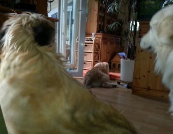 Am meisten Spass hatte ich natürlich mit Merlin, der sich mit mir einen Dauer-Wrestling-Kampf lieferte. Wir mussten nur Onkel Sam im Auge behalten, der nicht erfreut war, wenn wir Jungvolk ihn in seiner Mittagsruhe störten.