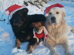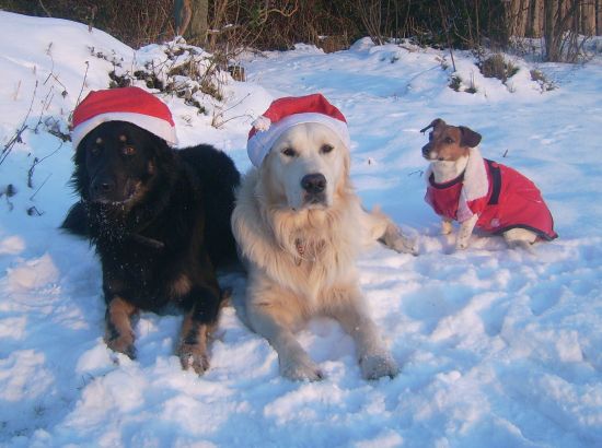 Für das komplette Weihnachtsfoto sollten wir drei möglichst eng zusammen rücken. Kein Problem – Jacky und ich kuscheln ja sowieso gerne, und Ginny hat die Chefin einfach mitten rein springen lassen.