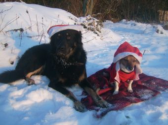 Miss „Etepetete“ Ginny wollte allerdings wieder keine Mütze auf dem Kopf behalten – sie schaute so erbärmlich und mitleiderregend, dass die Chefin ihr nur das Weihnachtswurst-Mäntelchen anzog. Unsere kleine Dickmadame war sofort wieder obenauf und poste selbstzufrieden auf dem schwarzen Weihnachtswichtel.