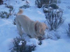 Es machte irre viel Spass und wenn ich nicht den ein oder anderen Lavendel geschrottet hätte, wäre ich wohl davon gekommen. Aber nachdem sich die Chefin das zunehmend chaotischer werdende Spiel eine Weile mit angesehen hatte, unterbrach sie mich mitten in einem dramatischen Versuch die Weihnachtskugel unter Tonnen von Schnee und einem wild gewordenen Retriever zu begraben und ich musste den dämlichen Stiefel doch noch apportieren. Kann ich natürlich, wenn es sein muss.
