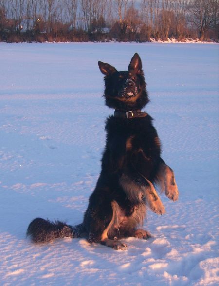Als die Chefin das sah, musste er ihn natürlich sofort apportieren. Wahnsinn, mit 4,5 Jahren kann unser Black-Jack jetzt doch annähernd zufriedenstellend apportieren: Er hält die verschiedensten Gegenstände und trägt sie mit etwas Anleitung stundenlang durch die Gegend.