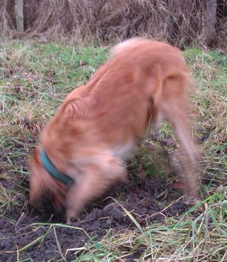 Lea ist ein echter Profi, was das Anlegen von tiefen Löchern angeht – sie hat innerhalb kürzester Zeit einen beeindruckenden Krater angelegt – die Retriever staunt und lernt!