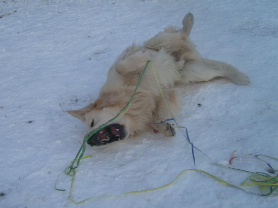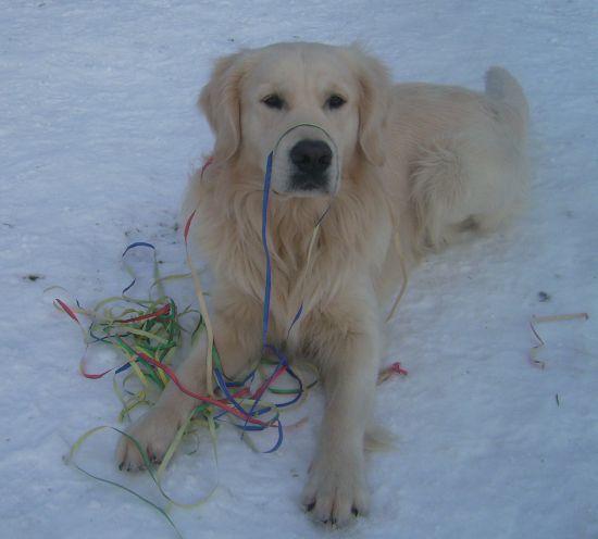 Hund kann sich Luftschlangen um die Ohren schlagen, sie aufessen und auch heldenhaft bekämpfen!