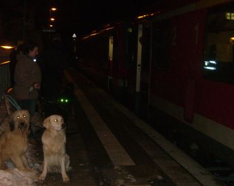 Auch mein Freund Merlin war mit von der Partie, und obwohl er sicher auch lieber an dem von Jack und mir geplanten Freilauf teilgenommen hätte, gliederte er sich brav neben seinem Frauchen ein und folgte uns zum Bahnhof. Immer muss die Chefin sich durchsetzen!