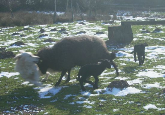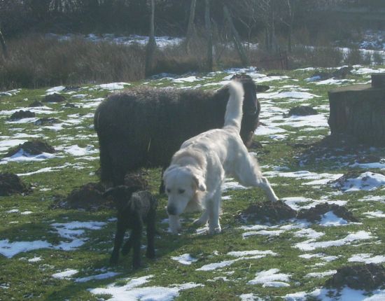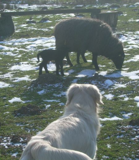 Ach, und die Lämmer! Zu lustig, wie sie quäkend durch die Gegend hüpfen. Am liebsten möchte ich immer gleich mit hüpfen, aber das ist natürlich verboten. Wenn sie noch klein sind, schaffe ich es wenigstens sie abzulecken, aber nach ein, zwei Wochen rennen sie dann weg und ich bin ganz enttäuscht.