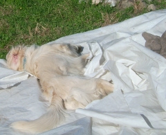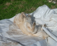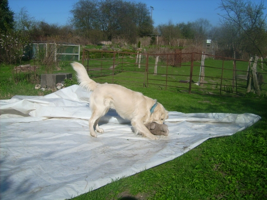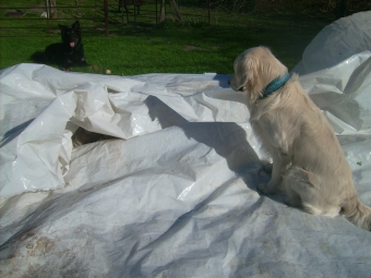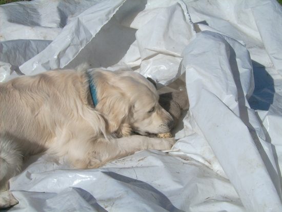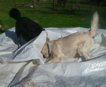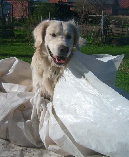 Erst als ich in meiner Begeisterung anfing Löcher in die Folie zu beißen, beendete die Chefin das Spiel, aber sie hat versprochen, dass wir demnächst wieder im Sommerschnee spielen dürfen.