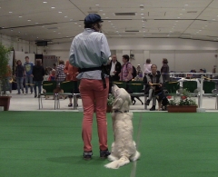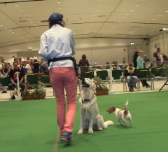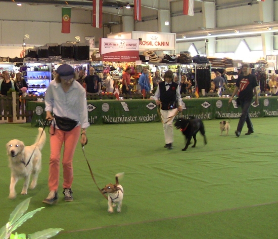 Bevor wir dort unsere große Show zeigten, waren Ginny und ich aber erst für eine Mini-Präsentation in Halle 4 vorgemerkt. „Was ist Dogdance und wie bringe ich es meinem vierbeinigen Freund bei?“ hieß das Thema – und Ginny und ich taten unser Bestes um Werbung für unseren Lieblingssport zu machen.