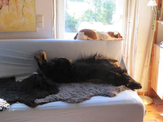 Ginny und ich waren sehr besorgt um unseren Schwarzen und erst als wir ihn ausgiebig beschnuppert hatten und wirklich sicher waren, dass er die Geschichte wohl überleben würde, haben wir uns zu ihm gelegt.