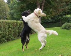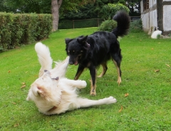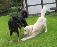 Schade, dass die Ferien schon zu Ende gehen, es ist viel lustiger, wenn die Chefin sich nur um uns und nicht um andere Hunde kümmert – andererseits sind in den Kursen bestimmt viele schöne neue Mädels …