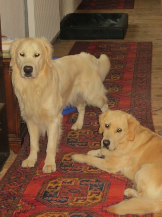 Heute Morgen hörte die Chefin im Flur meinen Triumph-Beller – sehr laut und durchdringend. Den kennt sie schon, wenn ich mit anderen Hundedamen poussiere, aber für Ginger hatte ich bisher wirklich nur brüderliche Gefühle und so kam sie hurtig aus dem Zimmer geschossen um Schlimmeres zu verhindern. Ich wollte mich gerade warm laufen, auch wenn ich natürlich rieche, dass unser entzückendes, wohlduftendes Retriever-Mädchen noch gar nicht so weit ist, und war etwas geknickt, dass die Chefin sofort dazwischen fuhr – Spielverderberin!