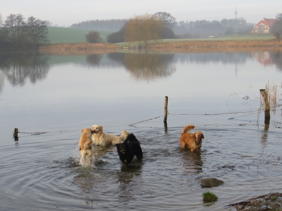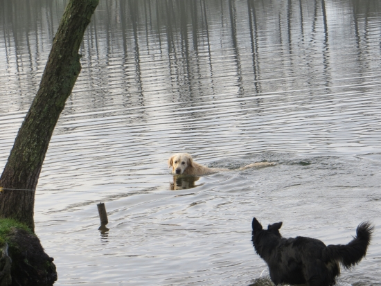 Die anderen Weicheier sind nur so ein bißchen durchs Wasser gehüpft, ich hingegen habe erst versucht ein paar freche Zaunpfosten aus dem Wasser zu zerren und bin dann ein Ründchen geschwommen – das ist Leidenschaft.