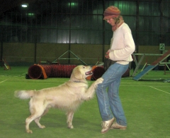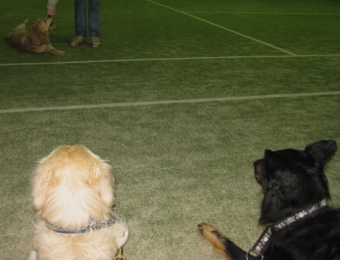 Jack und ich mussten erstmal im Platz-Bleib abdampfen – was wir ganz schön beknackt fanden, aber Katrin, unsere Freundin aus Berlin passte gut auf uns auf – und Ginger durfte als erste Tricks und Kunsstücke trainieren. Immer werden die Mädchen bevorzugt!