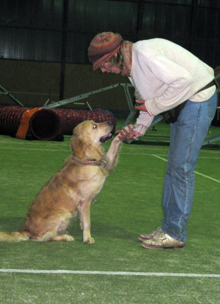 Bei mir fängt die Chefin jetzt auch mal an, sich etwas freier zu bewegen, weil sie sich, zumindest bei den Tricks, die ich schon länger beherrsche, darauf verlassen kann, dass ich sie mache, auch wenn sie mal kurz woanders hinschaut.