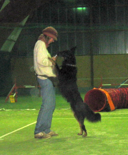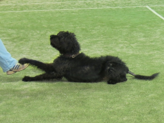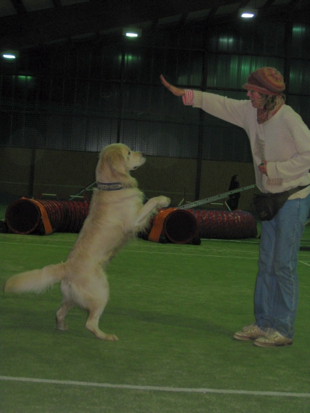 Dogdance macht gerade soviel Spass und ich komme in großen Schritten voran. Das Kriechen konnte ich sozusagen gleich, und zur großen Überraschung der Chefin habe ich ihr nach zwei, drei Versuchen ein High hingestellt, dass sie fast hinten über gefallen ist – tja, der Carlos der kann`s!
