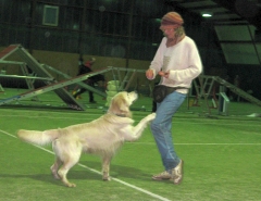 Heutzutage braucht Jack zwar eine gewisse Zeit, aber dann kann er die Außenreize ausblenden und zuverlässig arbeiten – die Chefin war sehr zufrieden. Im Moment vergnügen sich die beiden in ausgefallenen Grundpositionen, vorwärts und rückwärts im „Contra“, „Seite“ und „Quer“ - da wird einem schwindelig beim Hinsehen. Das nennt sich dann „Heelwork to music“, und ist eine Variante des Dogdance. Bitte sehr, ich arbeite lieber an den klassischen Tricks wie CrissCross oder Winken.