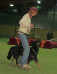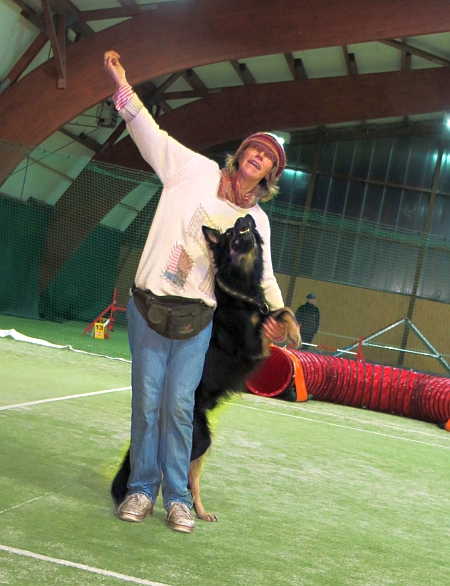 Die Chefin will wieder mehr Dogdance machen, im Winter ist ihrer Meinung nach die Zeit in der neue Tricks einstudiert werden. Da kam die nette Einladung von Katharina und ihren Border Collies gerade recht – Dogdance in einer ehemaligen Tennishalle mit Licht, ebenem Boden und ohne Matsch.