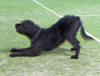 Und – Wunder geschehen immer wieder – von einem Tag auf den anderen klappt jetzt auch das Männchen ohne direkte Handhilfe. Die Chefin meint, das liegt daran, das ich so ein gut trainierter Kraftprotz bin, mit meinen Hundekumpels trainiere ich ja auch jeden Tag Bodenkampf, Hochstandkampf, Rempelkampf, Rollkampf, ...