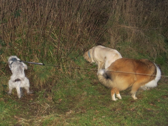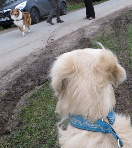 Die beiden freuten sich sehr einander wieder zu sehen und wedelten gleich gemeinsam im Vier-Viertel-Takt. Ich war überhaupt nicht angesagt, aber ehrlich, es gab soviel zu beschnüffeln und zu markieren, dass ich lieber mit den gesetzteren Herrschaften Stine, Annouk und Picco vorweg daddelte. Poussieren kann ich auch an anderen Tagen.