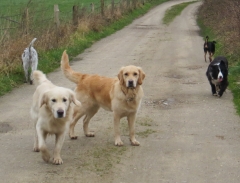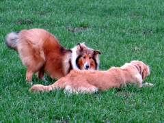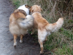 Endlich angekommen erblickte ich zu meinem Entzücken die wunderschöne Ronja, die aber leider nicht mehr läufig war und sich sowieso nur für ihre Ex-Welpenstundenfreundin Ginger interessierte.