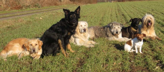 Jack wäre am liebsten sofort durchgestartet, um dem Kollegen sehr deutlich zu sagen, dass unser Rudel eine geschlossene Gesellschaft ist und er auf keinen Fall mit aufs Foto kommt. Die Chefin stieß wie ein Adler auf Jack und mich herab und hielt uns an den Halsbändern fest. Jack stimmte daraufhin ein wildes Getöse an, was mich völlig wuschig machte. Nichts mehr war es mit der Retriever-Ruhe, ich wurde ganz wild und aufgeregt.