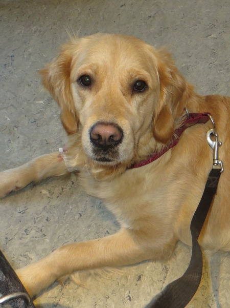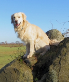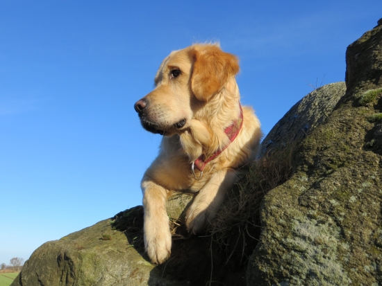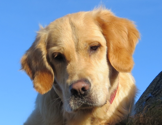 Merlin war auch schon oben, da kam auf einmal Retriever Pelle mit seinem Frauchen auf dem Rad um die Ecke gebogen.