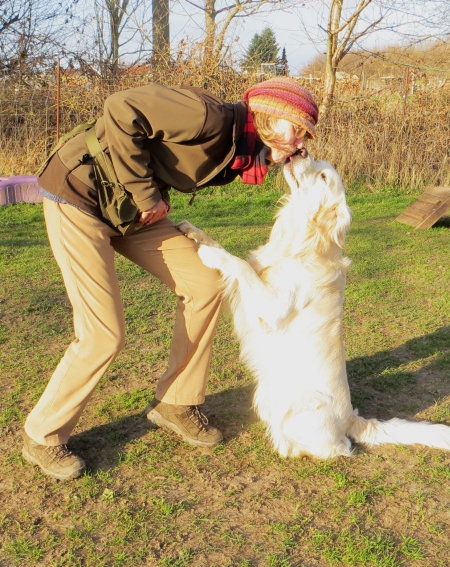 Mit Jack und mir geht es jetzt erstmal mit vielen Leckerchen, aber immerhin, ein Anfang ist gemacht.