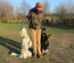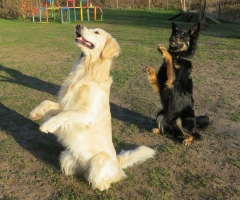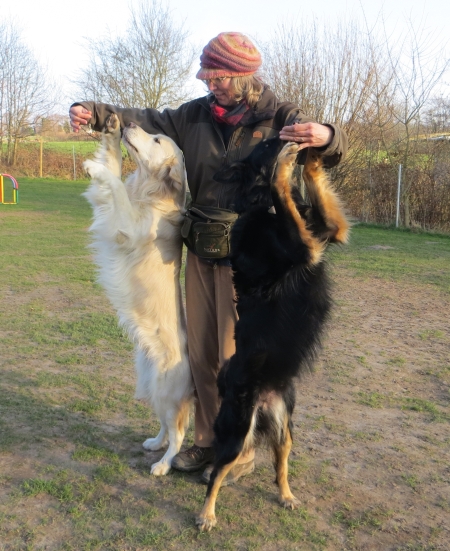 Nachdem es lange total matschig auf unserem Platz war und weder die Chefin noch wir wirklich Lust hatten zu trainieren, ist jetzt der Frühling da und wir üben neue und alte Tricks.