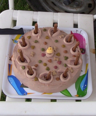 Die Chefin hatte alle Hunde der Hundeschule und ihre Besitzer eingeladen und zu unserer großen Freude und trotz des zunächst trüben Wetters kamen sie in großen Scharen. 80 Hunde hat die Chefin gezählt, soviele waren noch nie gleichzeitig auf unserem Gelände. Auch der Wettergott war beeindruckt und pünktlich zum Beginn des Festes lichteten sich die Wolken und es hörte auf zu regnen.