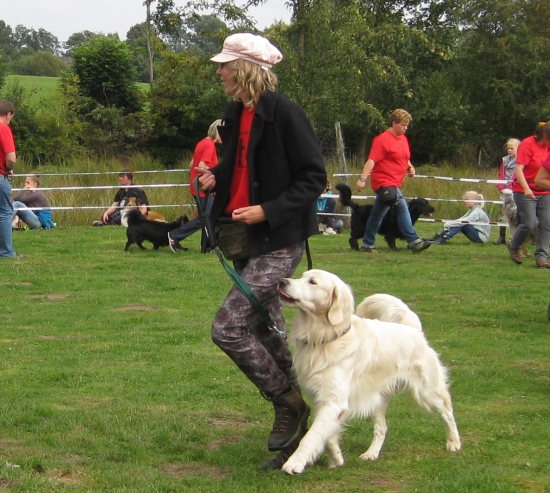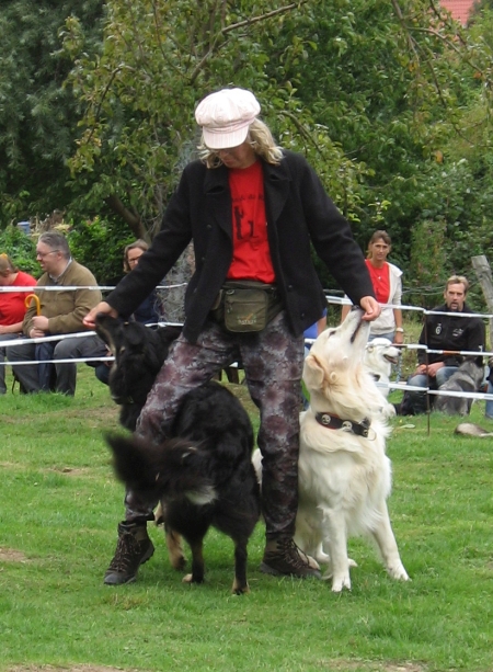 Ich war schon die ganze Zeit ziemlich auf 180, weil ich so gerne im zentralen Mittelpunkt gestanden hätte – Carlito Colombo will immer im Mittelpunkt stehen (Anmerkung der Ch.) - so dass ich fast explodierte, als ich zusammen mit der Chefin das Gruppen-Obedience anführen durfte.