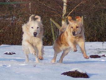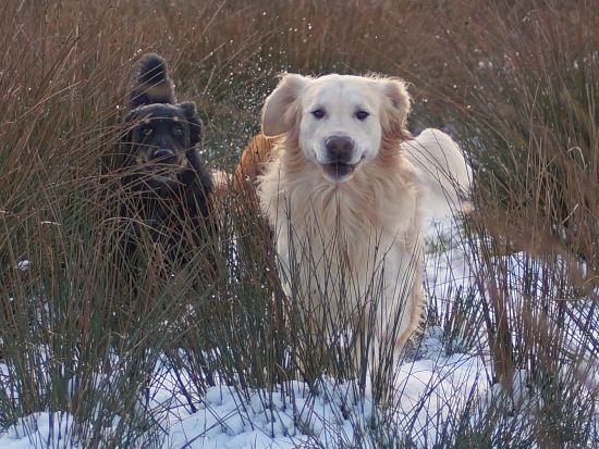 Wir Retriever haben natürlich jede Sekunde draußen genutzt um zu rennen und zu toben! Schnee-Wrestling stand dieses Jahr hoch im Kurs, dicht gefolgt von Irre-im-Kreis-rennen und bei Jack natürlich: Such-den-Schneeball!