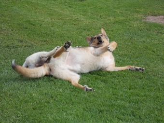 Ich bin dann sehr unterwürfig, damit er sich gut fühlt, der alte Herr. Aber irgendwann wird er plötzlich völlig albern und wälzt sich bellend auf dem Rücken. Das ist das Signal, dass ich toben darf – und das mache ich dann ausgiebig.