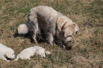 Auf der Wiese gab es so viel zu sehen und zu entdecken – wir Großen haben es den Younsters vorgemacht: Als erstes haben wir uns ausführlichst gewälzt und allen Welpen von Anfang an klar gemacht, dass ein echter Golden Retriever immer einen Hauch von Matsch verbreitet.