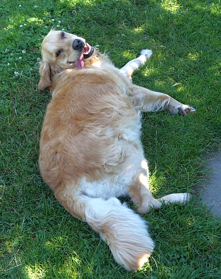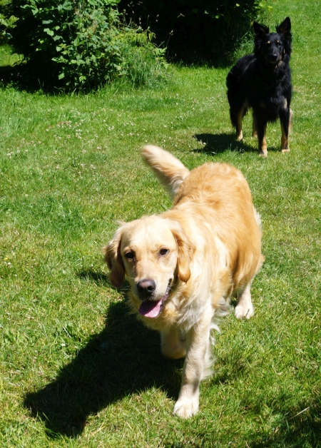Nachdem die letzte Woche doch sehr beschwerlich war, inklusive Bindehautentzündung und dem Tonnenbauch, der zwischendurch die Atmung abzudrückte, ist jetzt die freundliche Ruhe vor dem Sturm eingekehrt: Ginger ist fröhlich, denn der Bauch ist nach unten gesackt. Zwischendurch glaubt man zwar, er hängt gleich auf dem Boden, aber die Atmung ist wieder unbeschwert und Miss Mollipops wedelt wieder und geht bisher auch noch jeden Tag wissensdurstig auf einen kleinen Spaziergang mit.
