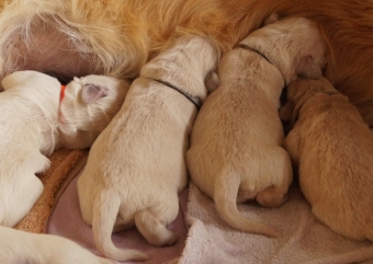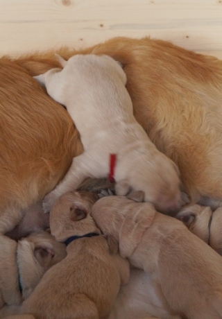 Die Nasen und Pfötchen sind schon schön schwarz pigmentiert, Wahnsinn, wie schnell das gegangen ist. Und das Geburtsgewicht haben alle bis auf den kleinen Murkel annähernd verdoppelt – wow, ich glaube, die Jungs und Mädels werden tatsächlich genauso stattlich wie ich!