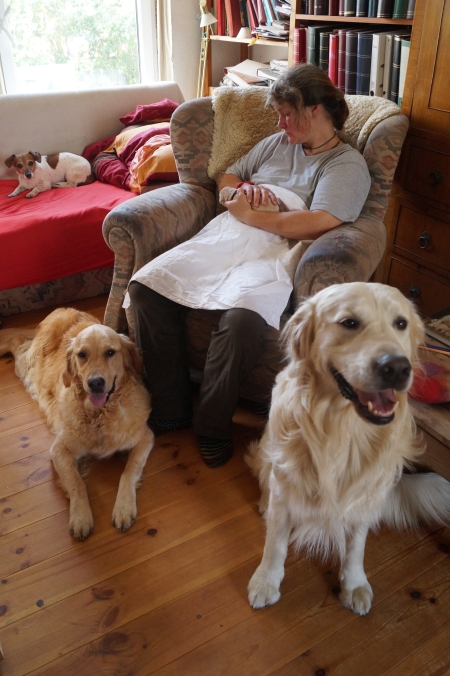 Also haben die Chefs den Murkel immer vorab an die mütterliche Milchbar gelegt, damit er schon seine erste Ration intus hat, bevor die wilde Jagd einfällt.Guter Plan, der leider überhaupt nicht funktionierte: ein Hunde-Murkel mag nicht allein sein und hampelte völlig überfordert an den Zitzen herum ohne wirklich ernsthaft Mich zu trinken.