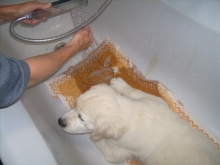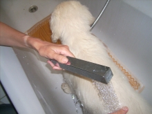 Naja, die Tierärztin war anderer Meinung, sie meint, mein Fell gehört schuppenfrei und hat mir ein Bad verordnet. Dabei habe ich schon eine Dröhnung Sulfur C 30 und Silicea-Schüsslersalze bekommen.