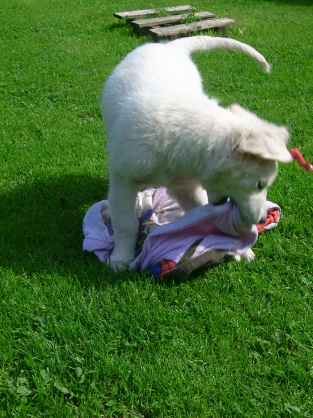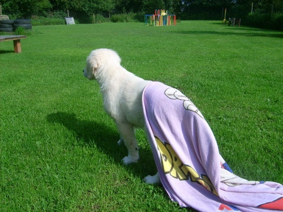 Anschließend sind wir eine Runde zum Toben nach draußen gegangen. Ich habe das Handtuch endgültig fertiggemacht, dass traut sich in nächster Zeit nicht mehr mich abzutrocknen!