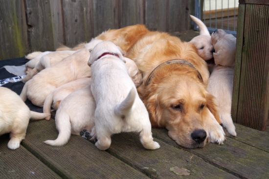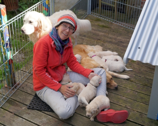 Doch nach kurzer Zeit krochen die ersten Welpen wieder zu Mama Ginger an den Bauch oder der Chefin auf den Schoss – so ein allererster Ausflug ist ganz schön anstrengend! Diesen Moment habe ich genutzt um von meinem Podest herunter zu kommen und endlich auch ausführlich gestreichelt zu werden – ich kome dieser Tage gar nicht auf meine Kosten.