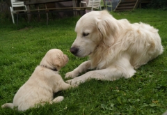 Jack sprang entsetzt auf – nicht nur, dass der Welpe in seine heilige Individualdistanz eindrang – er nahm ihm sogar seinen Apfel weg – solchen Herausforderungen ist unser Sensibelchen nicht gewachsen und er schaute völlig entsetzt zur Chefin. „Keine Sorge, Jack – Du bekommst ihn ja wieder“; versicherte diese ihm, und gab ihm das angeknabberte Teil schnell wieder, nicht dass es Tränen gegeben hätte.