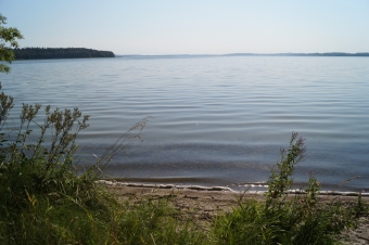 Als ich mich damit abgefunden hatte, dass die Welpen an diesem Tag noch nicht mit mir hinaus schwimmen würden, ging ich meiner zweitliebsten Beschäftigung am Seeufer nach: Stöcke zerbeißen und mich wälzen.