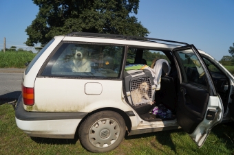 Die Chefs hatten alle in zwei Transportboxen gesteckt und in dieser verpackten Form wurde nebenbei die erste Autofahrt gechillt gemeistert.
