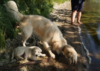 Letzten Freitag war es so weit: die Carlitinchen lernten ihre wahre Bestimmung als Golden Retriever kennen – wir fuhren an den See.