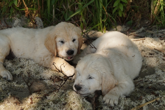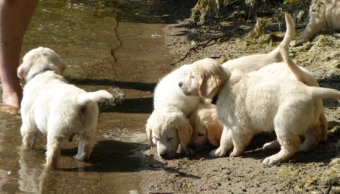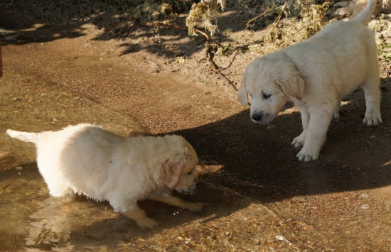 Sie haben Wettrennen veranstaltet, jede Menge Essbares gefunden und immerhin allle ihre Bäuchlein mit Wasser benetzt, mutige kleine Welpen!