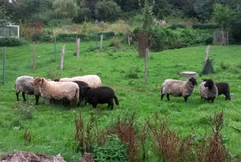 Gesehen hatten die Carlitinchen die Schafe natürlich schon öfter und waren deshalb ganz scharf darauf ihre Wiese kennenzulernen. Die Schafe waren an diesem Tag in den Hühnerhagen ausquartiert worden und die Chefs dachten, es wäre doch schön mit alen Welpen über die weite Koppel zu streifen.