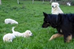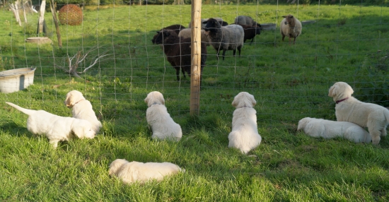 Nun kennen die Welpen langsam alle Tiere auf unserem Hof, die Chefin muss jetzt dringend ein paar Kühe und Pferde herschaffen, damit die landwirtschaftliche Ausbildung abgeschlossen wird.
