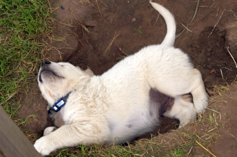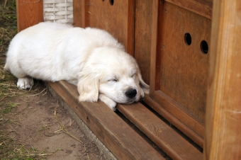 Mit schlafenden Welpen war die Sache noch recht einfach. Die Rutsche ist sowieso ein beliebter Schlafort und die wenigen, die sich daneben nieder gelassen hatten, wurden sanft zu den anderen gelegt. Man hätte es dabei belassen können, aber die Chefin ist ja ehrgeizig!